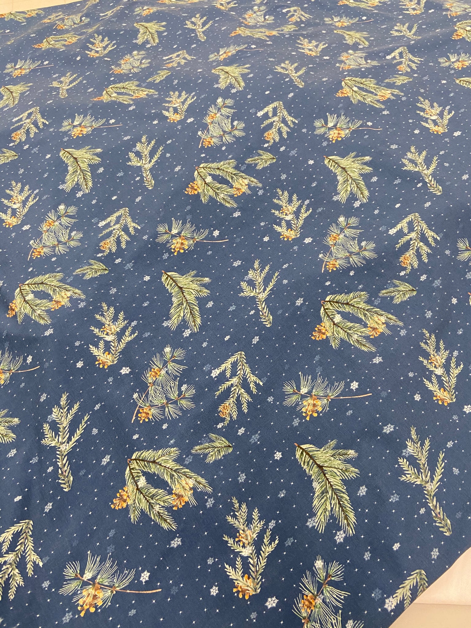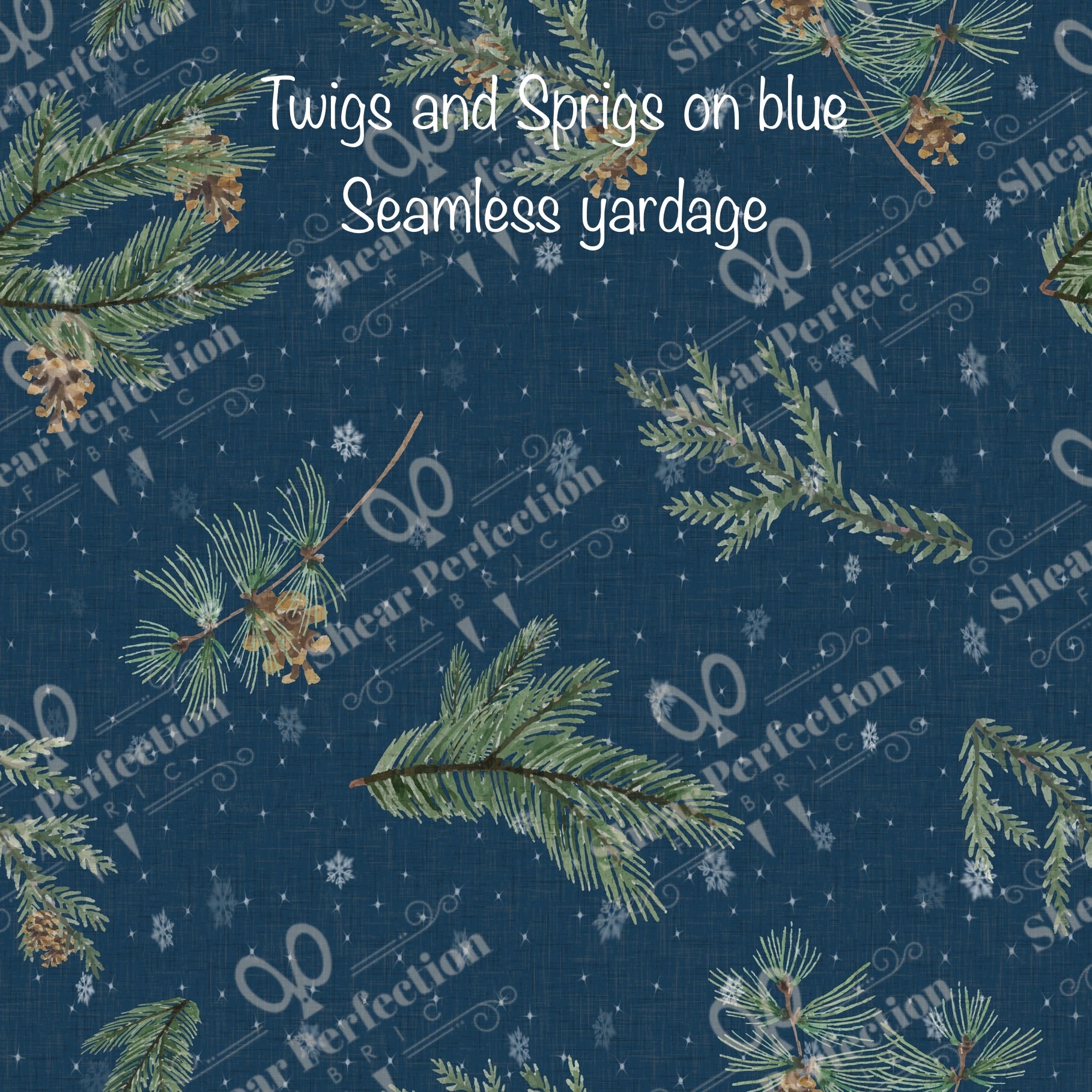 R9 - Twig and Sprigs on Blue on French Terry