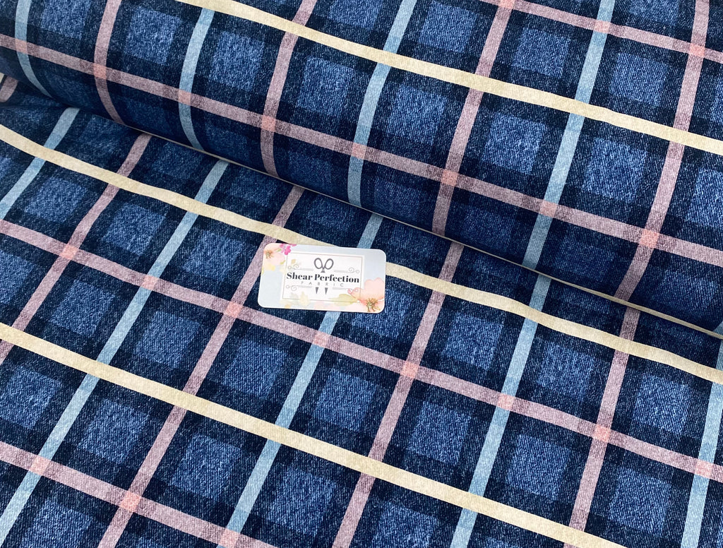 R15 - Teal Gradient Plaid on French Terry - $14.50