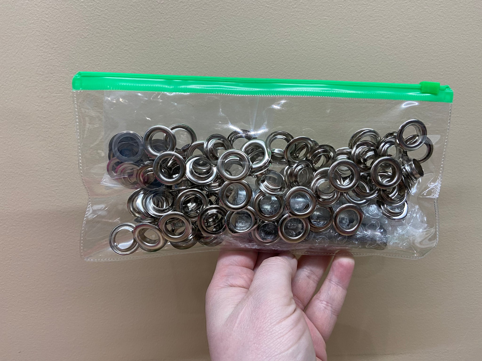 Grommets Kit With ToolS Each set of grommet includes 2 parts: an eyelet and a washer Package includes: 100 Sets of 1/2” grommets 1 Punch 1 Base 1 Install rod Set will come packed in either a Storage...Read more