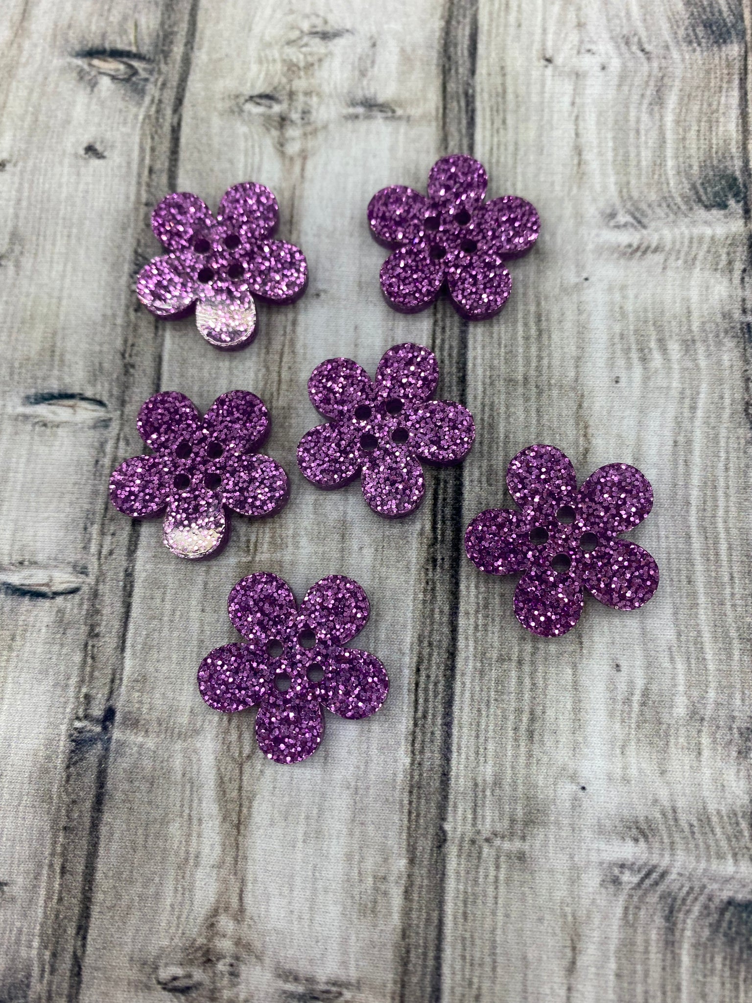 Acrylic Buttons 6pack - Glitter Purple Flower