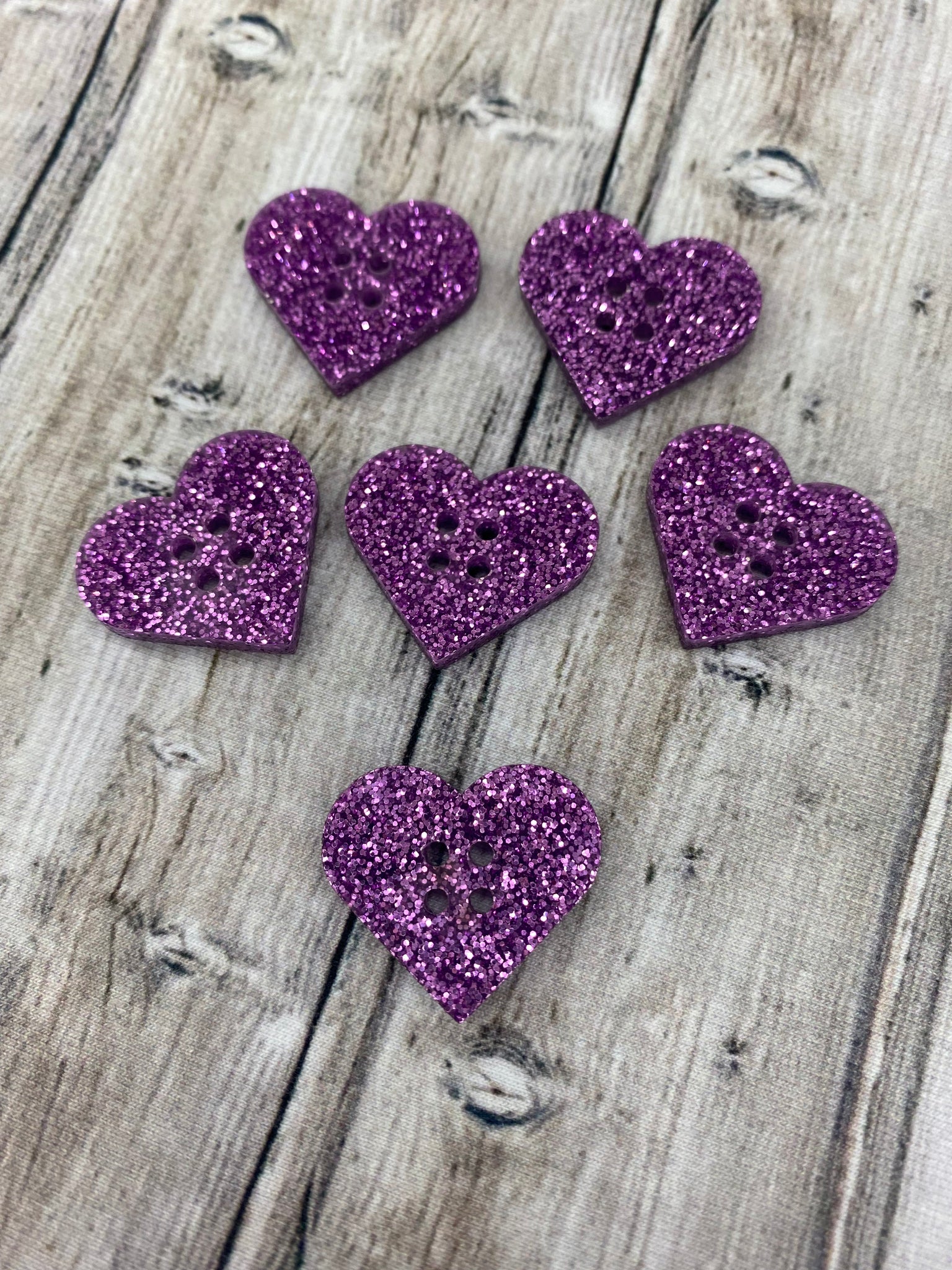 Acrylic Buttons 6pack - Glitter Purple Hearts