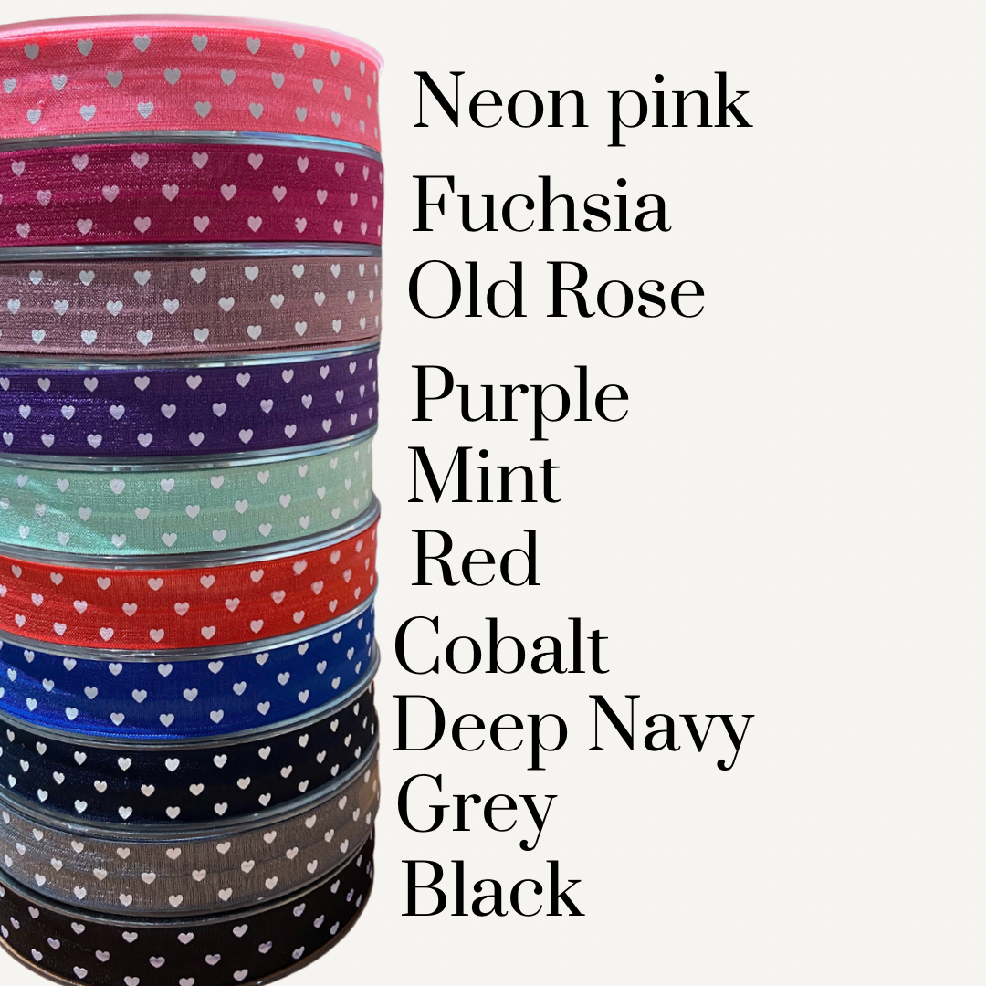 Fold over elastic by the meter - Hearts - 1" ( 25 mm)