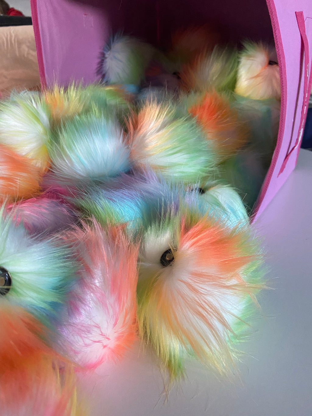 Faux fur Pom Poms - mixed Rainbow - $4.50