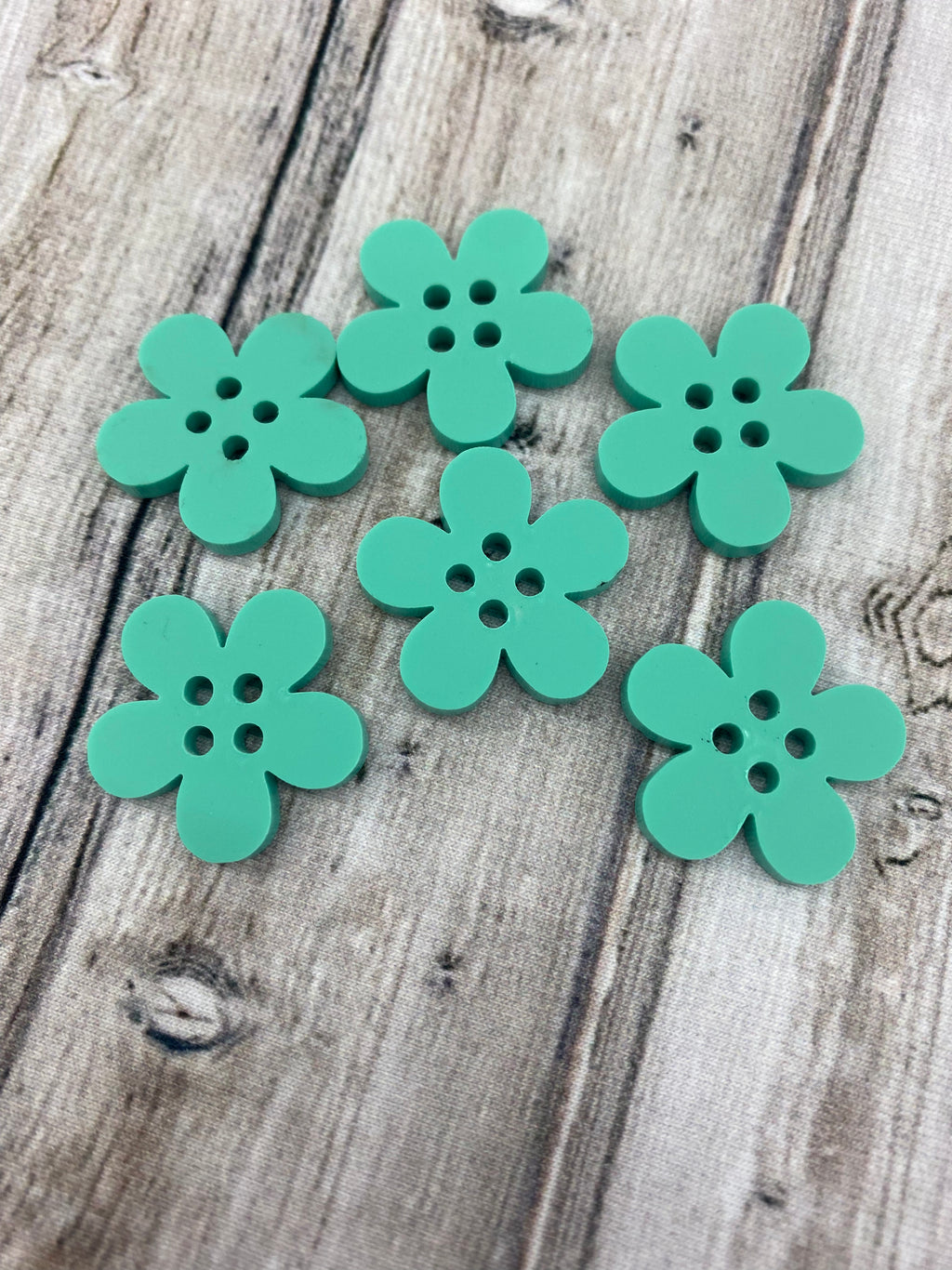 Acrylic Buttons 6pack - Solid Teal Flowers - $2.00