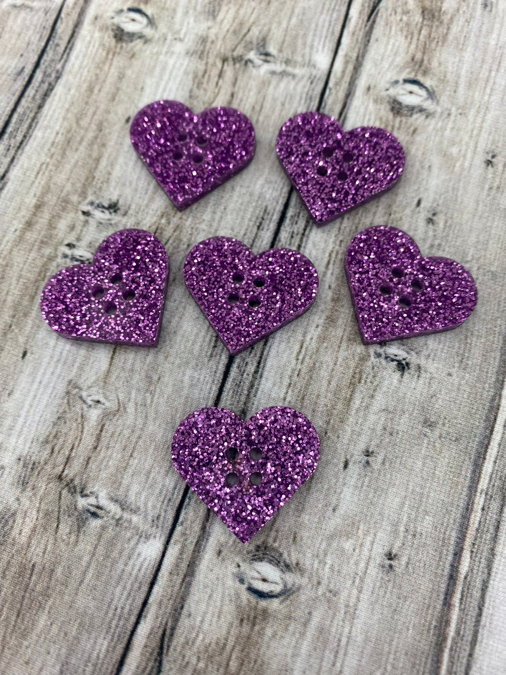 Acrylic Buttons 6pack - Glitter Purple Hearts - $2.00