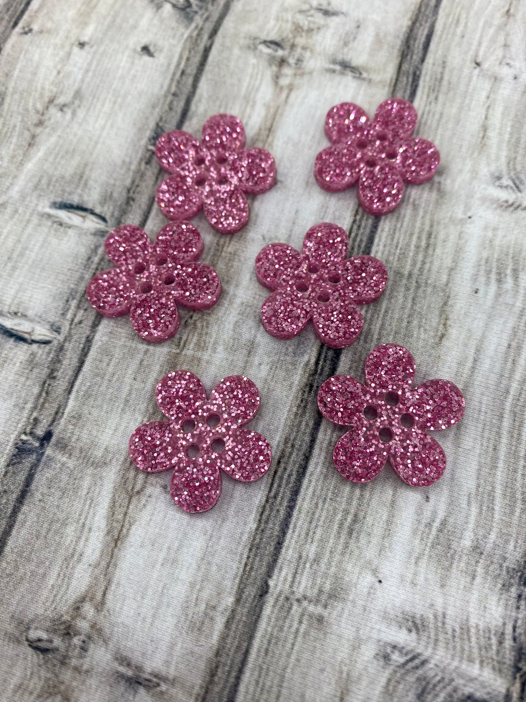 Acrylic Buttons 6pack - Glitter Pink Flower - $2.00