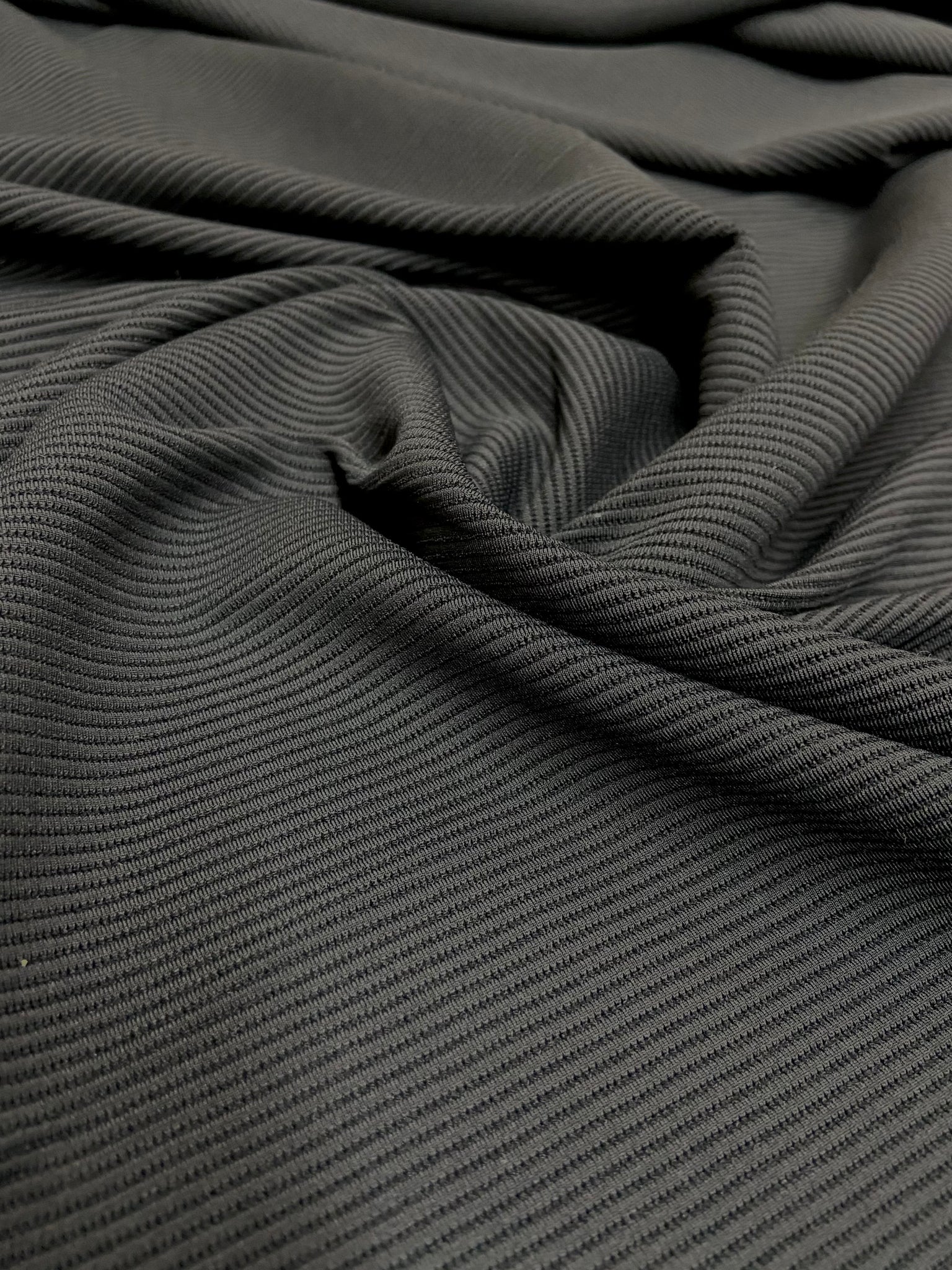 Fabric Content:85% Nylon 15% spandex Weight: 250 GSM Width: 150 CM Stretch: The Ribs run horizontally with 55-65% stretch and vertical stretch of 70-80% Drape: Great - the rib adds a little structure Care Instructions: Machine wash delicate and lay flat...Read more