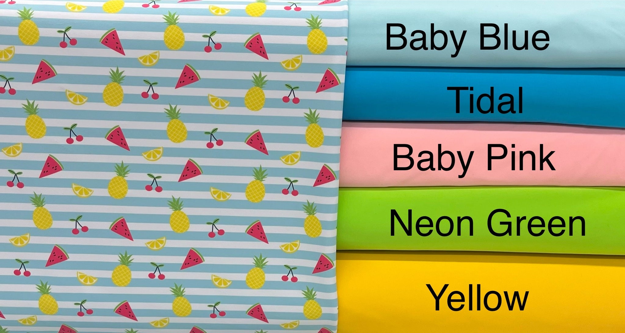 Sold by: 1/2 meter The Fabric Options Available for this round are listed below - PLEASE note that the colour will vary between bases. For example the Poly Swim colours will be darker than you will see on...Read more