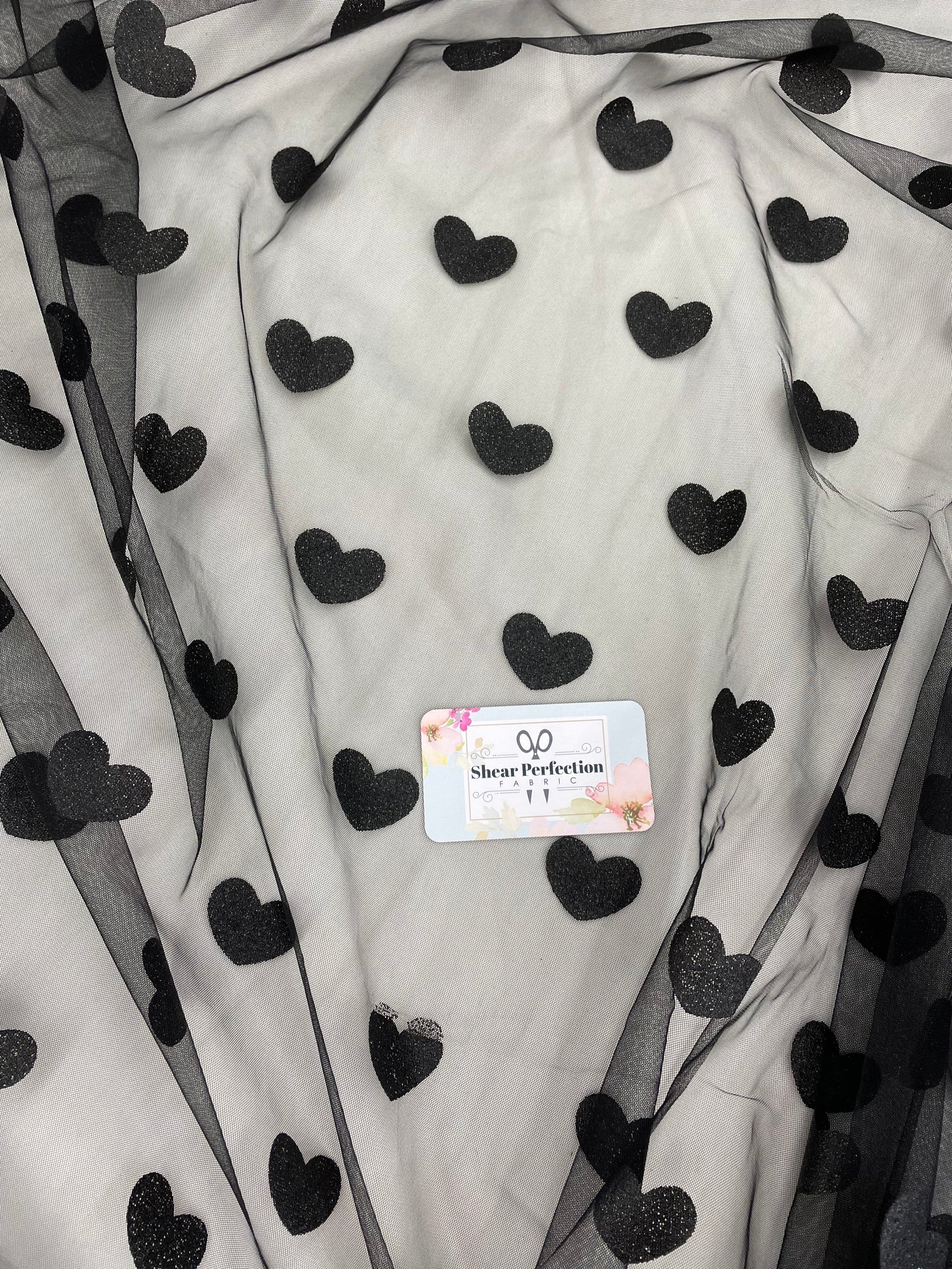 Tulle - Black with Glitter Hearts