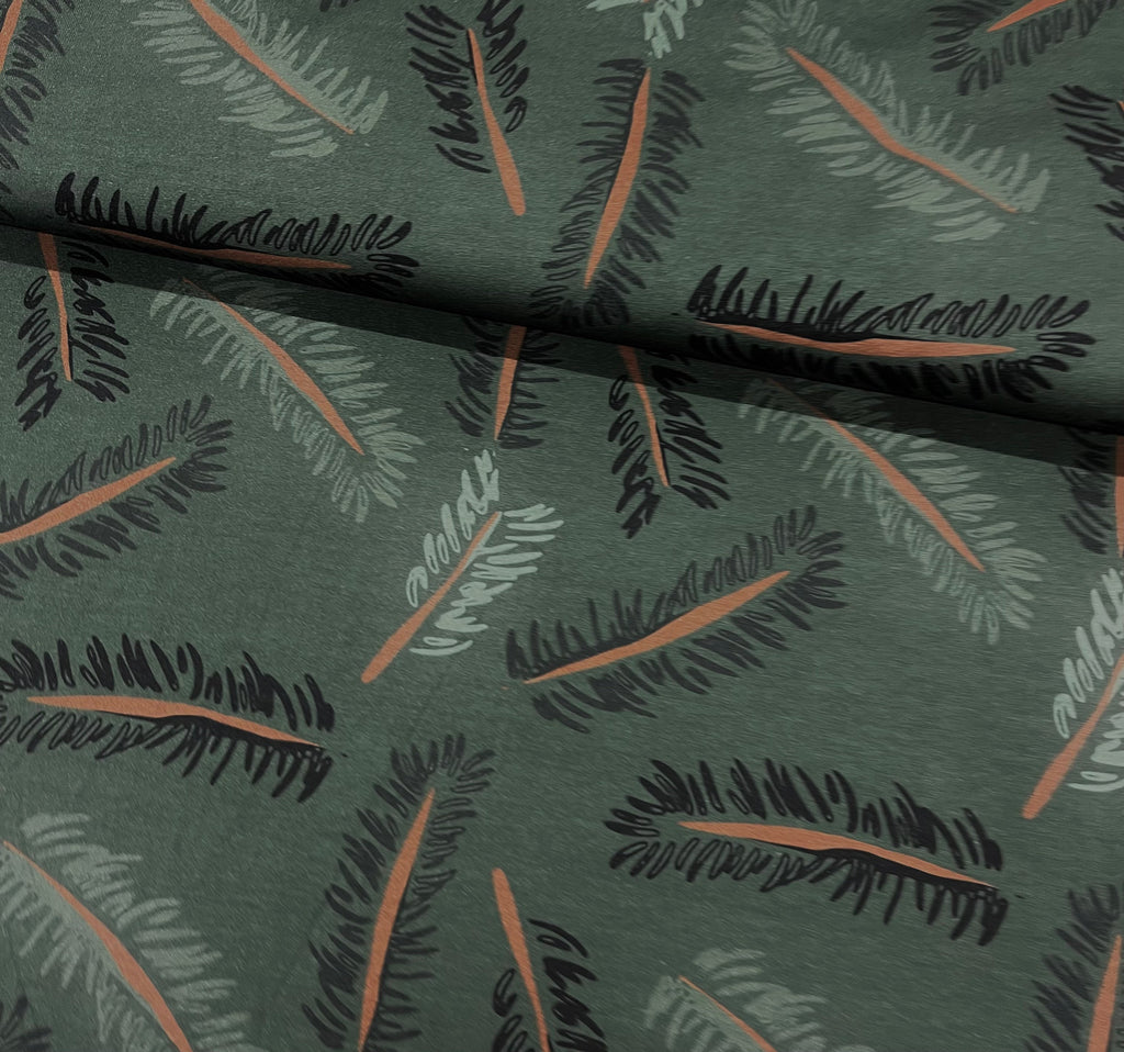 LAST CUT - R25 Retail - Grounded Series - Frosty Pine on Cotton Lycra 1.5m - $43.00