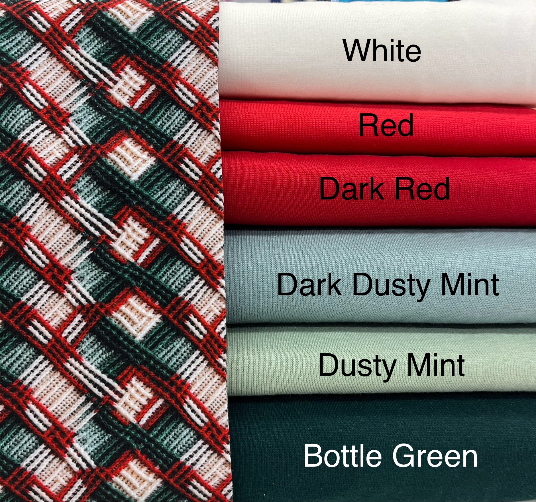 White, Red, Dark Red, Dark Dusty Mint, Dusty Mint, Bottle Green |