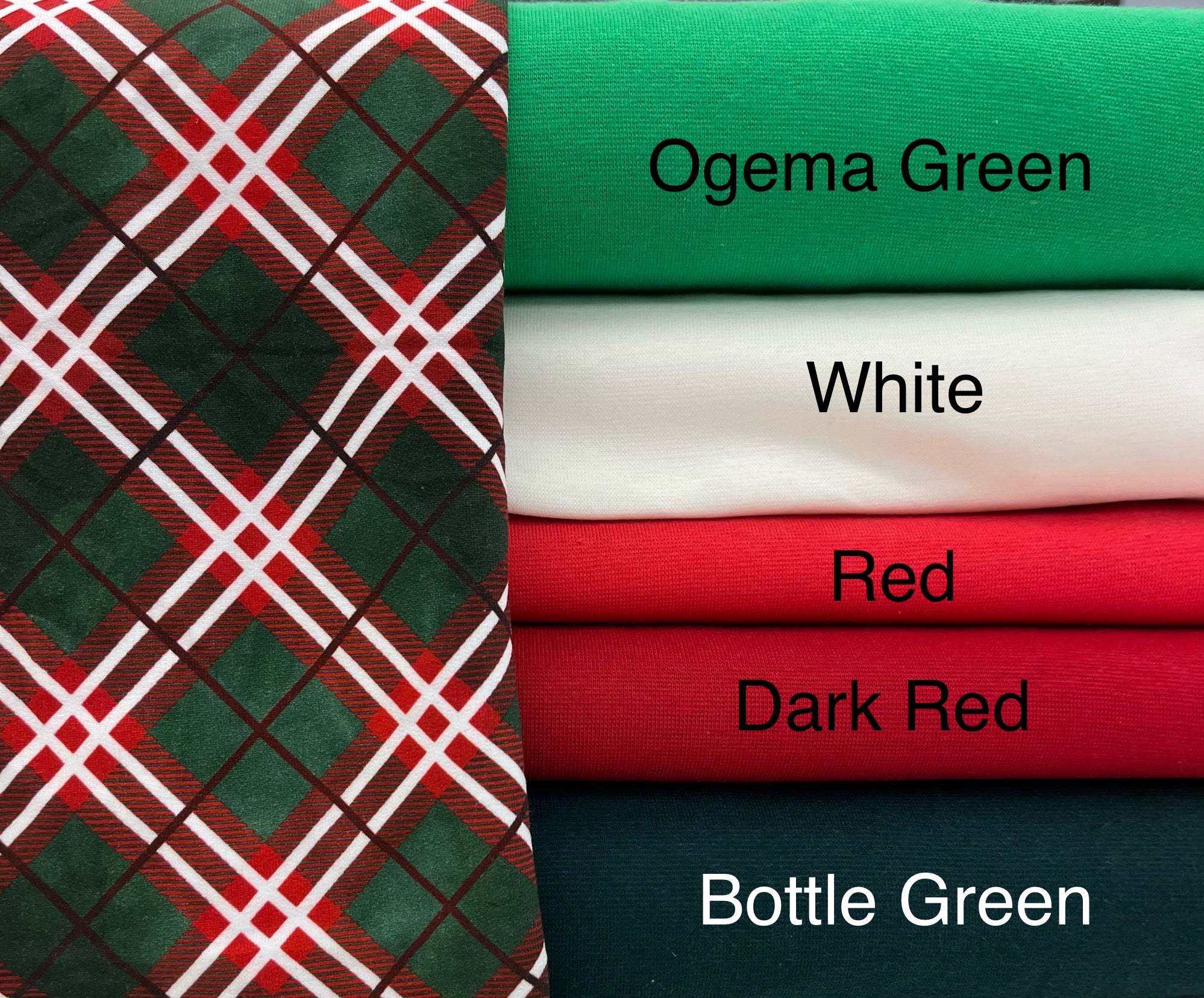 Ogema Green, White, Red, Dark Red, Bottle Green |