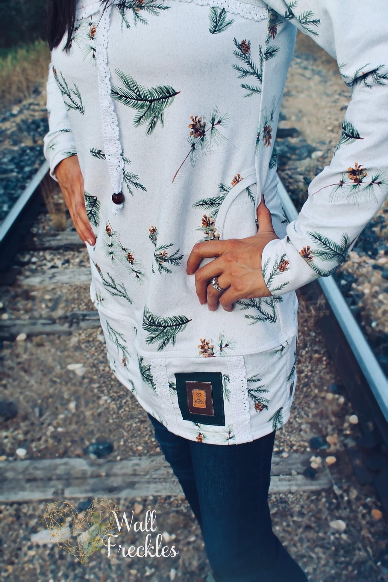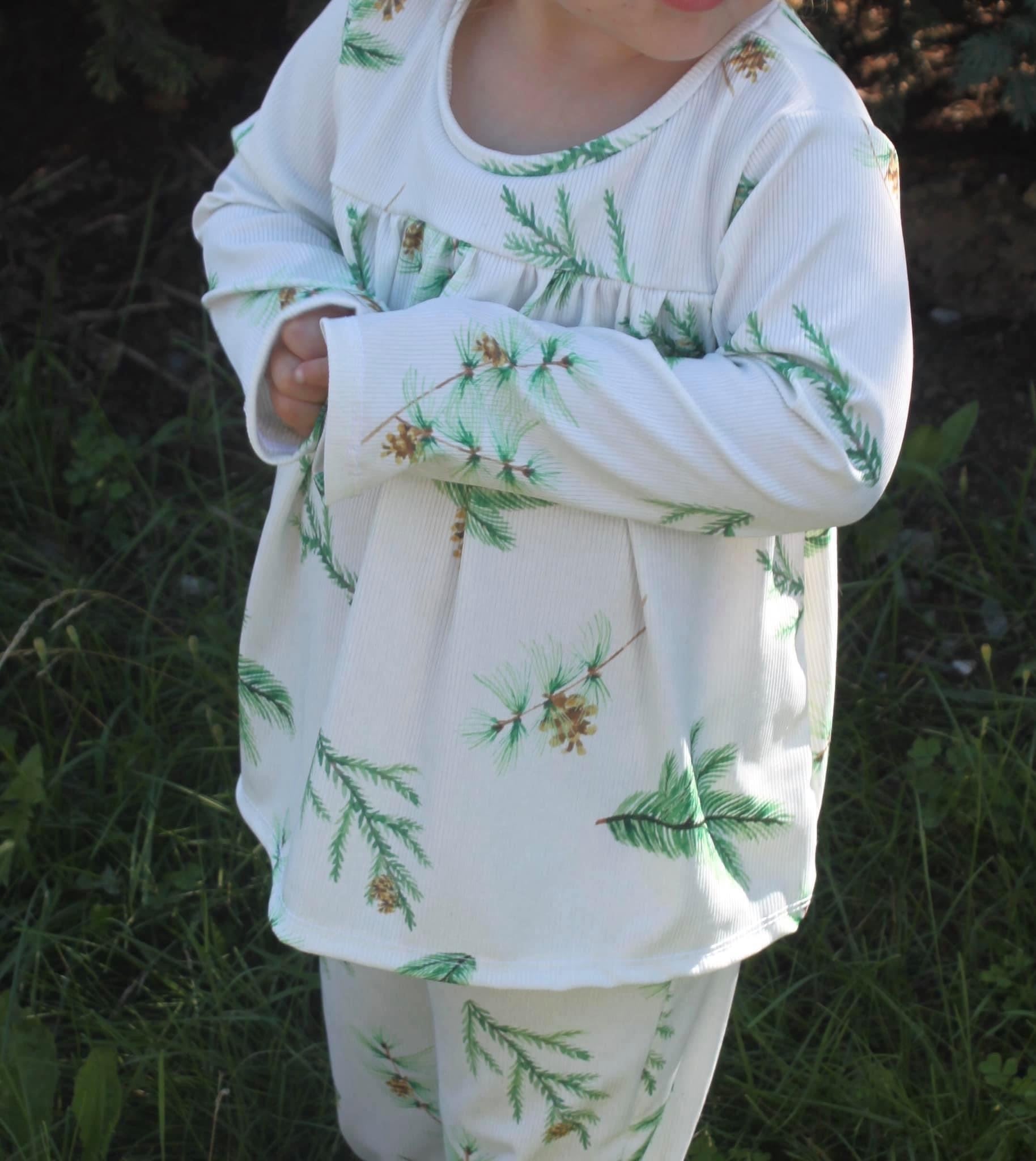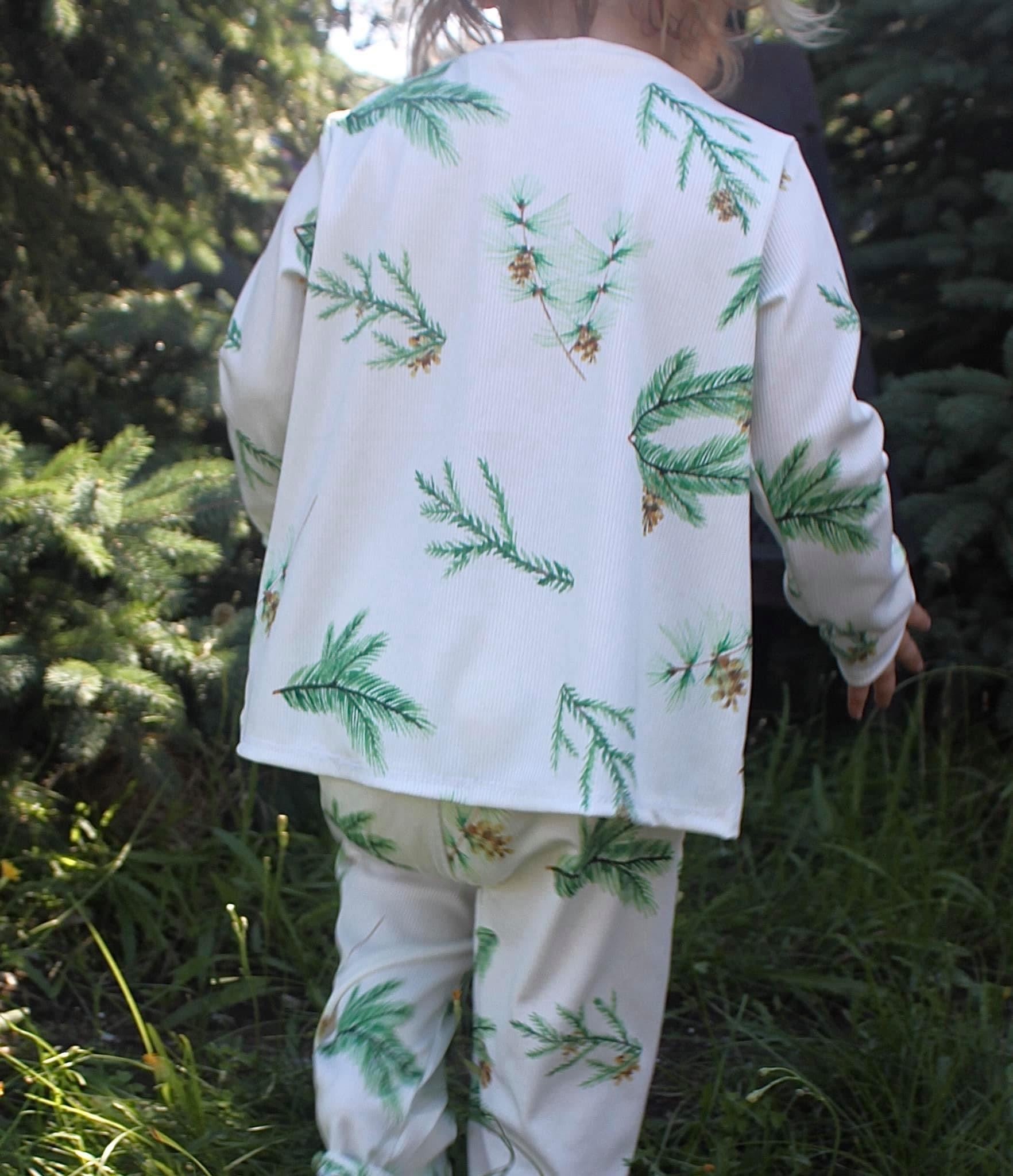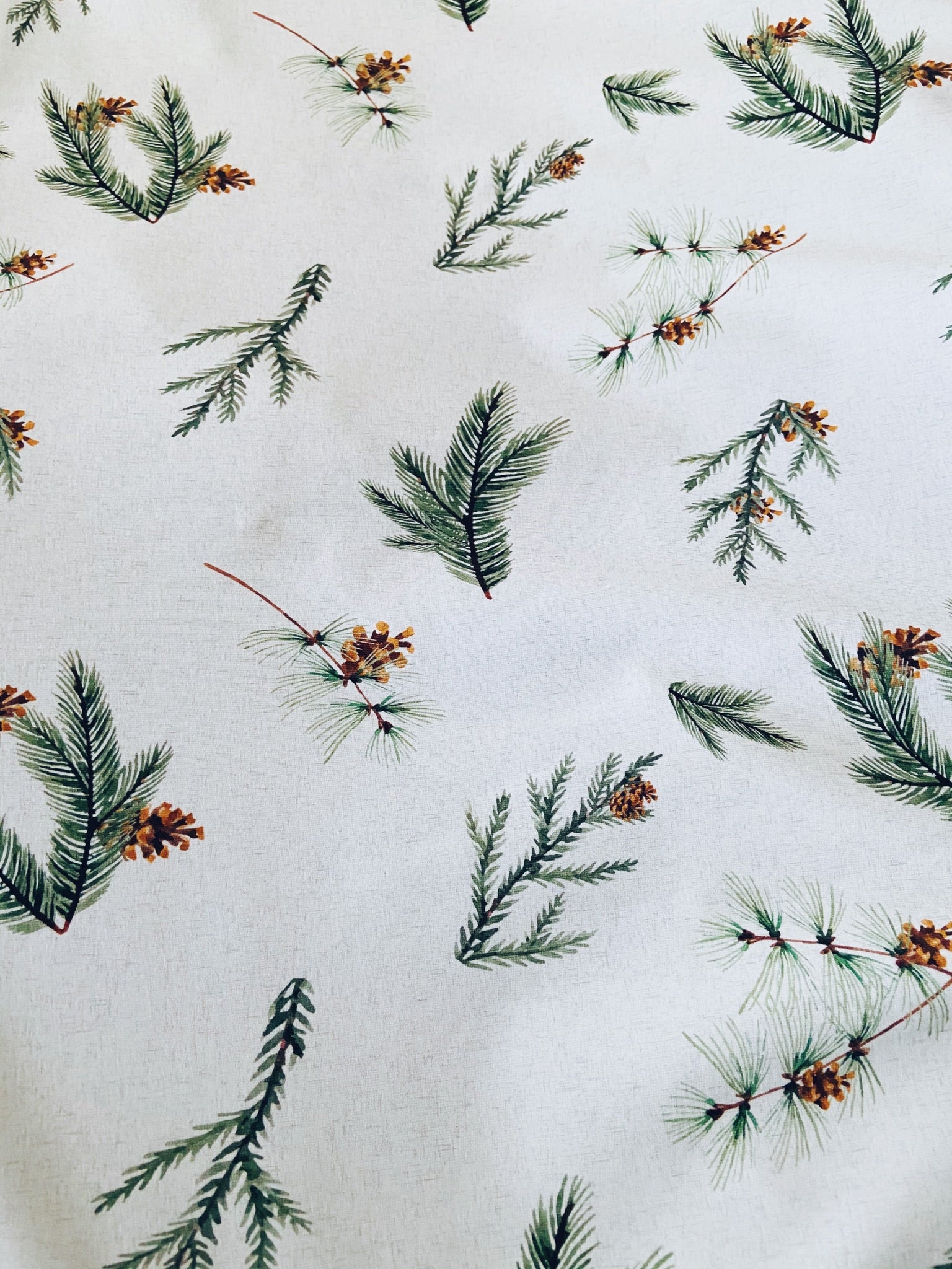 R9 - Twig and Sprigs on White Poly Rib Knit